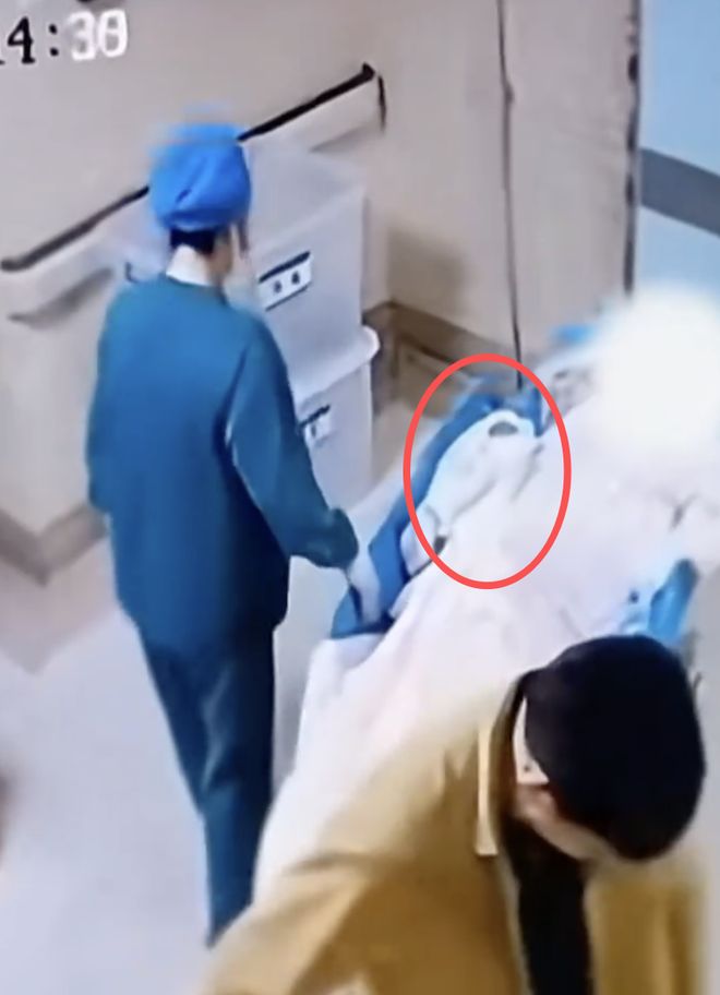 现场监控视频显示,新生儿被放在母亲一旁,而在医护人员松开扶住护栏的手后,护栏落下,新生儿坠落在地。母亲第一时间伸手想去拉住孩子,但还是掉落,医护人员随即马上从地上抱孩子。